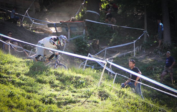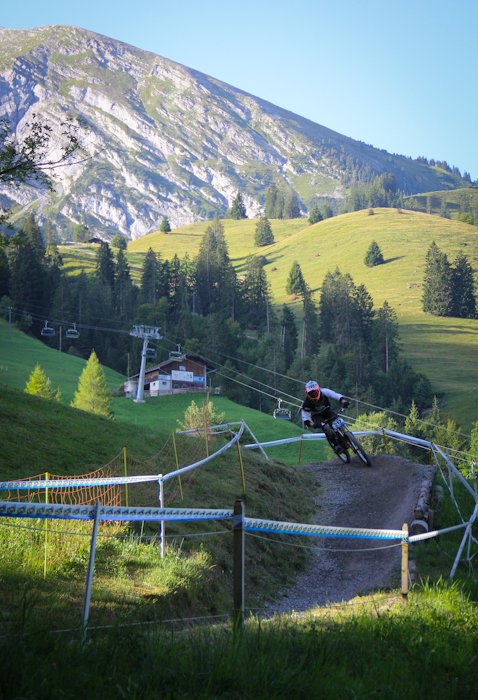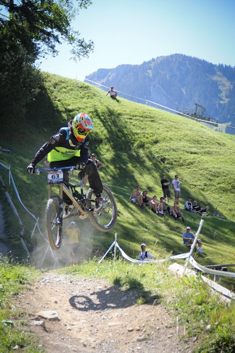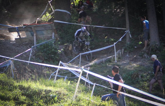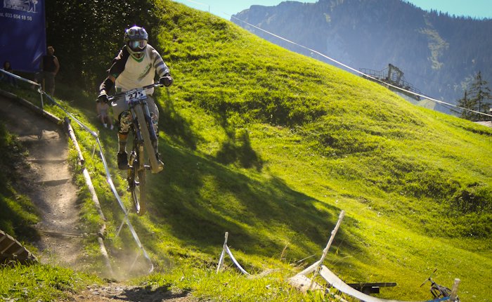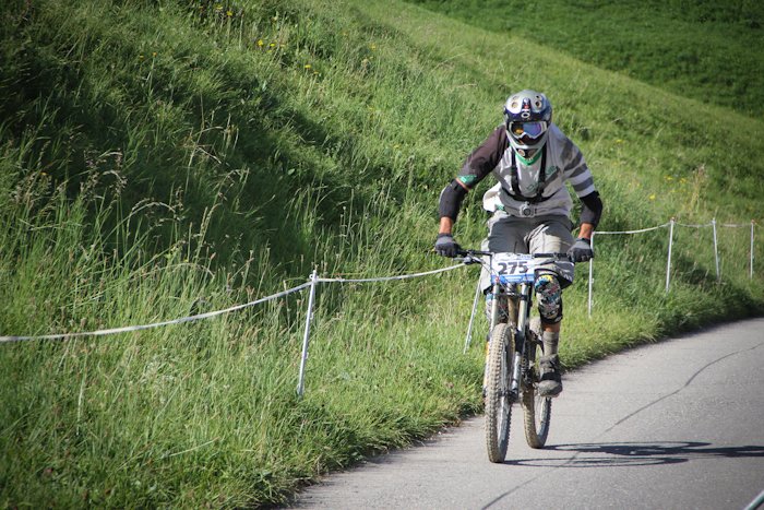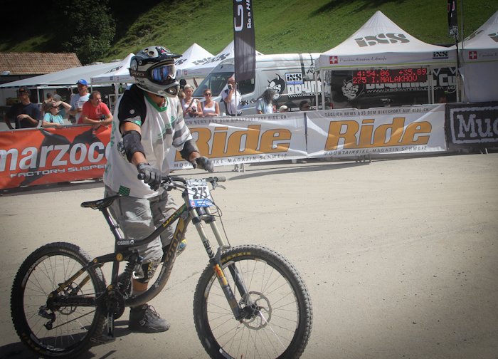 Чемпионат Швейцарии по даунхиллуПроехав три подряд эндуро гонки, решил снова вернуться к даунхиллу, подходящим эвентом показался IXS Swiss Downhill Cup, в местечке Wiriehorm (Diemtigtal), ведь именно там есть free категория для участников без лицензии UCI, которой у меня нет (собственно, потому что, как правило, для выступления в мастерах она не нужна). Предварительно мероприятие казалось относительно местечковым, но на деле все оказалось совсем не так… 300 (!!!) участников, каково? Сразу скажу — не очень люблю Швейцарию. В смысле горы и виды чудесны, зимой словил в Лааксе супер фрирайд, но менталитет свой, не близкий россиянам (в отличие, например, от французов). Возьмем регистрацию — отстояв в 8 утра очередь из 15 человек, подхожу к столику, дядя спрашивает фамилию, а молодой человек на листочке с моим номером ставит печать, мол, подошел такой-то, иду дальше, следующий милый дядя с усами говорит: плати за инфраструктуру 10 франков, говорю — мне не нужна инфраструктура, все равно плати, это обязательно. В итоге заплатил за обычные пластиковые туалеты-будки 340 рублей. Сходил пару раз, можно прикинуть стоимость. Была еще большая передвижная столовая, которой я тоже не пользовался. После этого он ставит печать на листочек, и я иду дальше, к девушке, которая снова ставит печать, и выдает мне номер, ски-пасс и (какая щедрость!) разовый талончик на кофе или пиво. А теперь внимание, стоимость регистрации! За неделю до гонки 75 франков, меньше чем за неделю 90 франков. Оплачивать можно только пэй-палом и, хотя регистрировался за несколько дней, взяли 78.8 франка, получилось 2688 рублей + сбор «за инфраструктуру», итого 3000 рублей за участие в гонке! Не поленился подсчитать свои попытки, получилось около 250 рублей за один спуск. Да и дорога не слишком дешевая, учитывая старт из Л2А, всего 420 км., примерно 210 до Женевы и еще столько же до цели. Навигатор вообще не знает такого места Wiriehorm, гугл мапс знает и пустил машину вокруг Женевского озера через Лозанну и Берн. Как только въезжаешь в Женеву, картина на дороге меняется, Французы ездят исключительно на микролитражках, здесь множество Порше, Феррари, классические авто и просто все в основном новые. Швейцария — страна с самым высоким уровнем жизни в мире, вокруг невероятно ухоженные луга, окрестности и дома «с картинки». Сама дорога — всего две полосы. Если вы хотите целенаправленно посетить соревы в Швейцарии, то лететь надо в Женеву или Цюрих, а потом, ввиду удаленности всех этих деревушек, лучше ехать на машине. Относительно близко добраться также получается из всем известного и популярного Морзина. Wiriehorm — деревня буквально в три дома, с одним кресельным подъемником, вокруг красивые горы высотой 2500 метров. Дедушка на парковке вообще не говорит по-английски, как и большинство его сородичей — швейцарцы самодостаточны. Поэтому уходит время просто соориентироваться. Как позже выяснилось, на гонке проблема с парковкой, и все места, выделенные под базовый лагерь, забиты под завязку, всего около шести парковок. Абсолютно все участники приезжают на шикарных, огромных автокемперах, разбивают сервисные зоны с палатками и ничем не отличаются от любой профессиональной команды. Вечером в пятницу нам еще удается без проблем найти отличное место «с краю» и разбить свой лагерь. Когда поднимался наверх, боялся, часть перепада отрежут, но оказалось сов